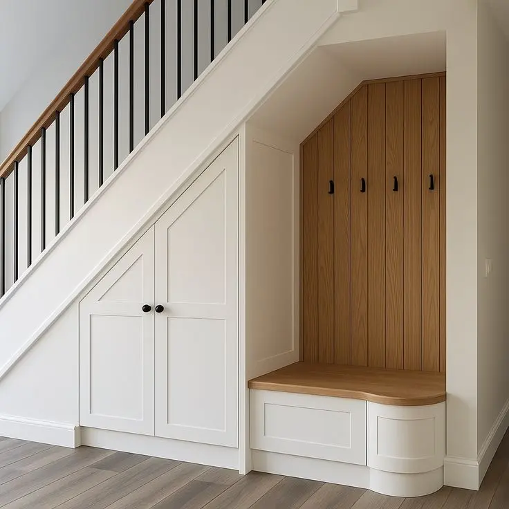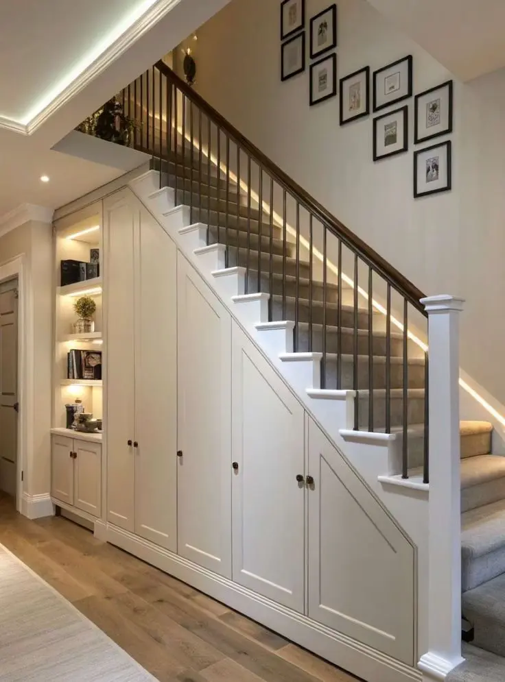 No designated ‘Mudroom’? Turn this open space into the perfect storage area for heavy winter coats, backpacks and winter boots. Why not build in a cozy home for your robot vacuum cleaner as well. Enjoy a clutter free hallway.