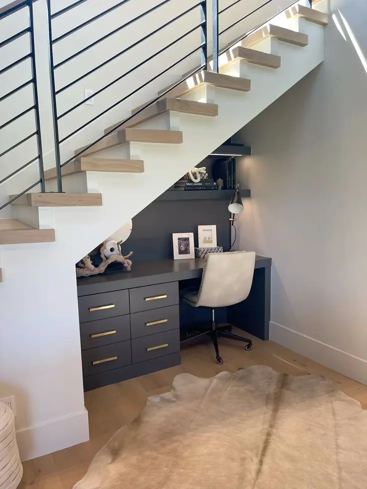 Convert unused space into a functional home office. We combine desk surfaces with integrated lighting and storage to create a smart workplace that fits seamlessly into your hallway or living area. No need to take up additional space in your home.
